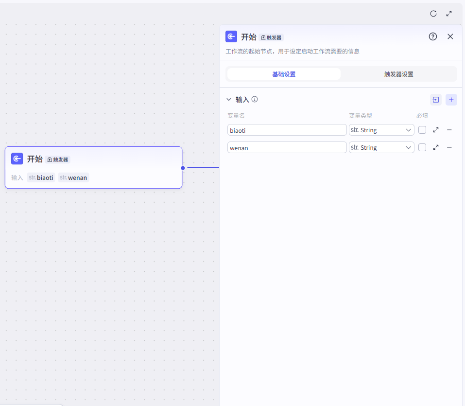 - title:用户输入的主题,即开始节点中的"biaoti"参数