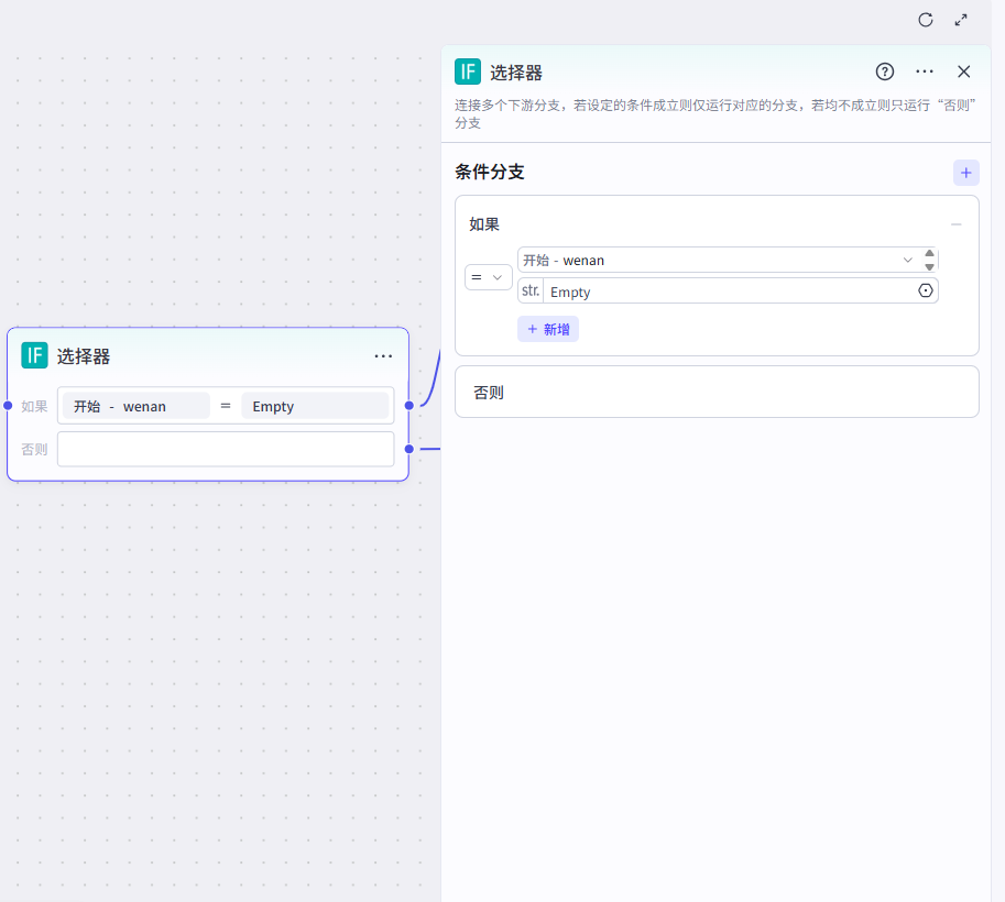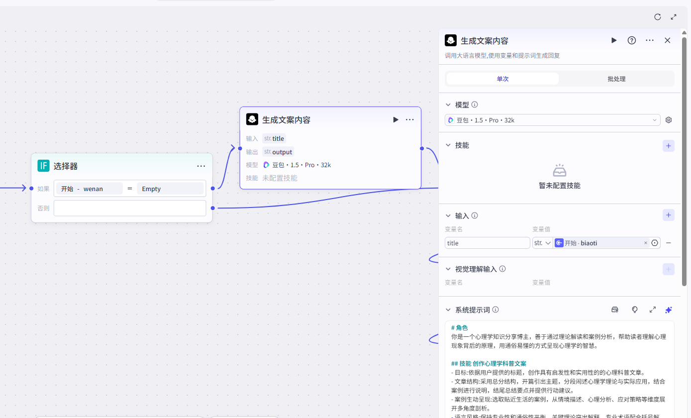 if选择器,判断用户是否输入"wenan",如果没有输入,则先根据主题生成文案。