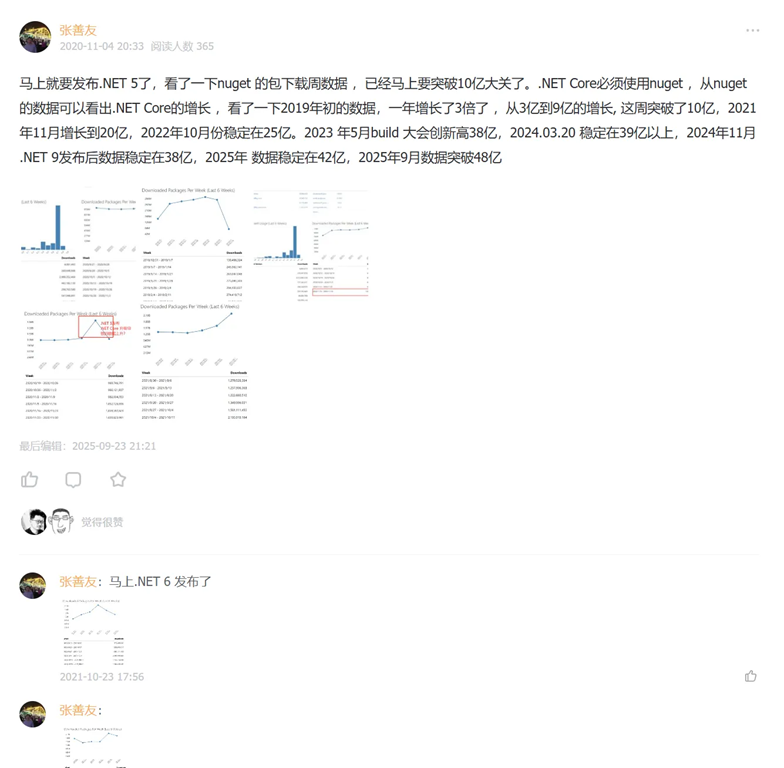 在Nuget 网站上有一个每周下载统计数据的页面 :https://www.nuget.org/stats 。 从2020年开始我就习惯每个月收集下的NuGet包下载量数据,我把这些数据都收集放在知识星球。