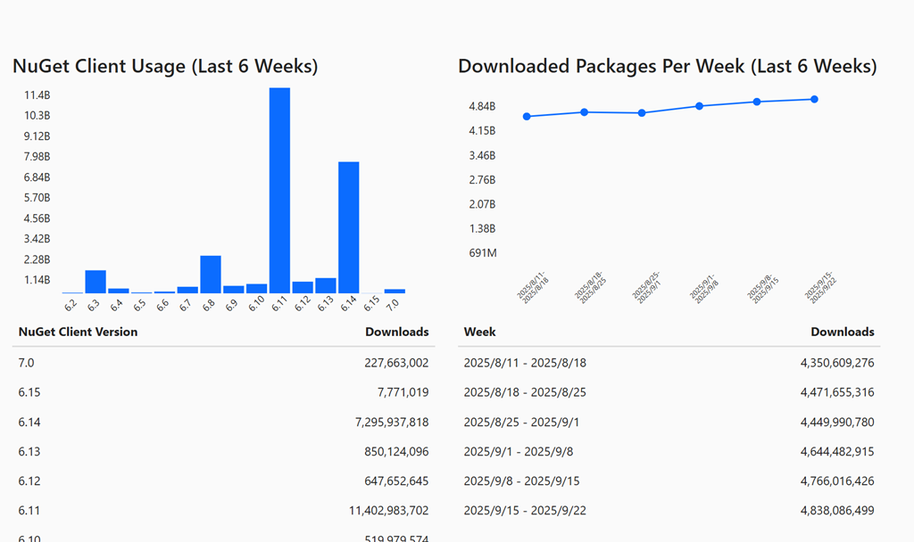 - NuGet生态扩张:包数量超42万,年下载量5700亿次(2025年数据)。